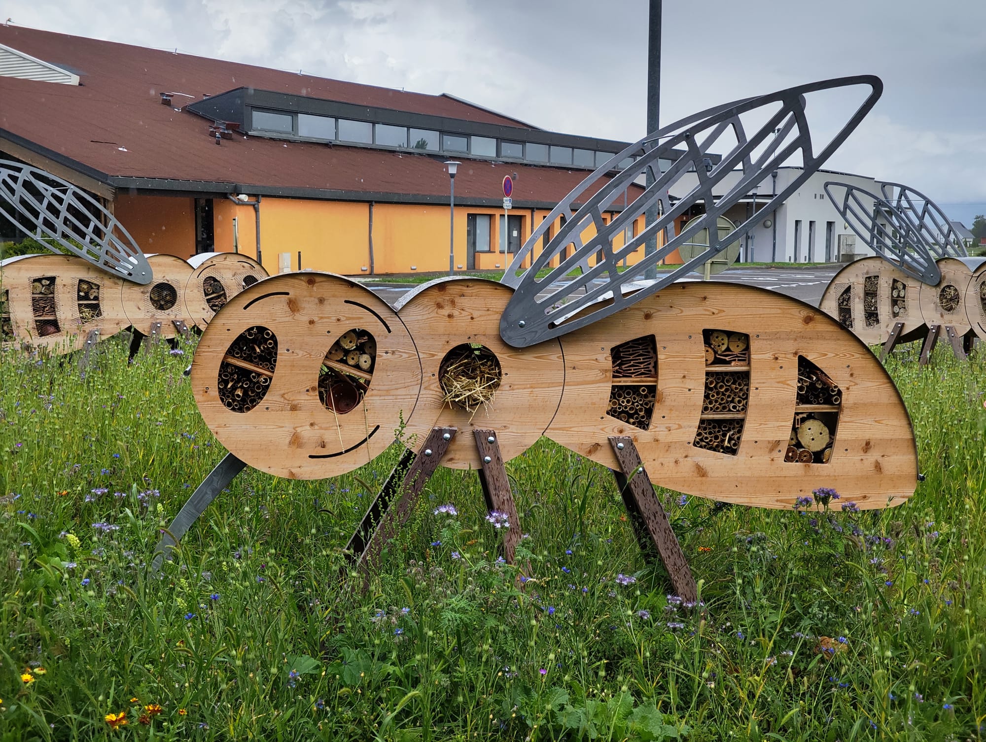 Überhaupt trifft man unterwegs auf merkwürdig Tiere, so wie das Insektenhotel in Form einer Biene.
