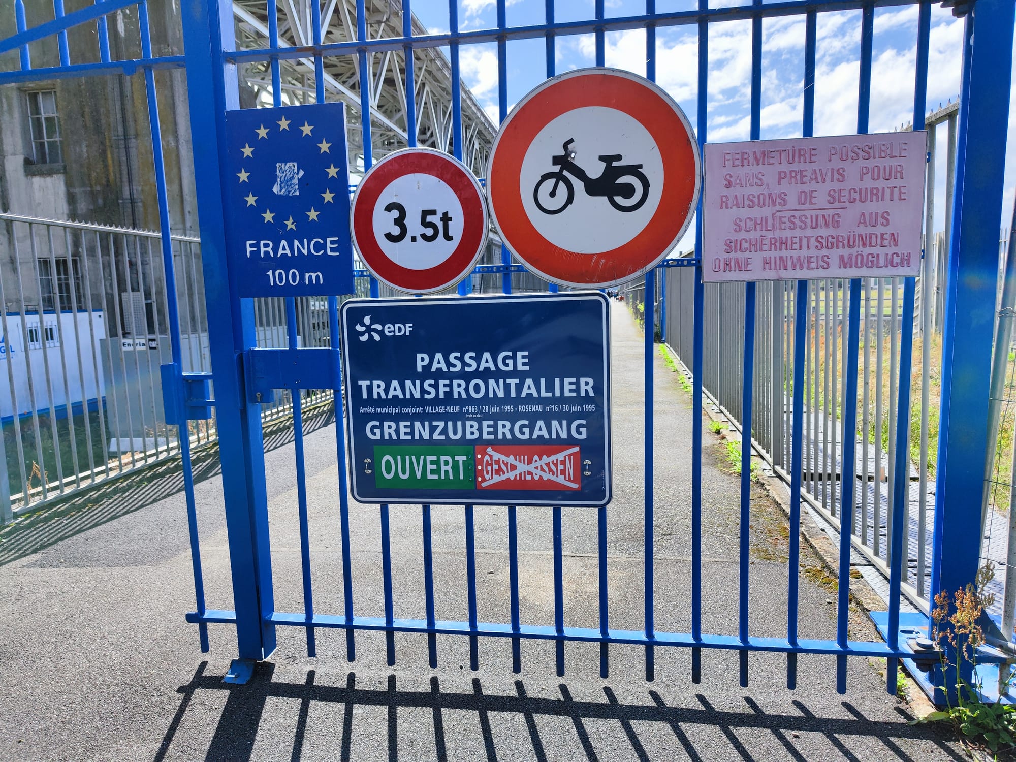 Dadurch und durch das Wetter und den Gegenwind ist dies einer der anstrengenderen Strecken. Ein letztes Mal gehen wir in Frankreich in einem Super U was zum Mittagessen kaufen. Und da das Wetter alles andere als den Anschein macht besser zu werden, essen wir gleich Vorort, etwas windgeschützt, im Fahrradabstellplatz.