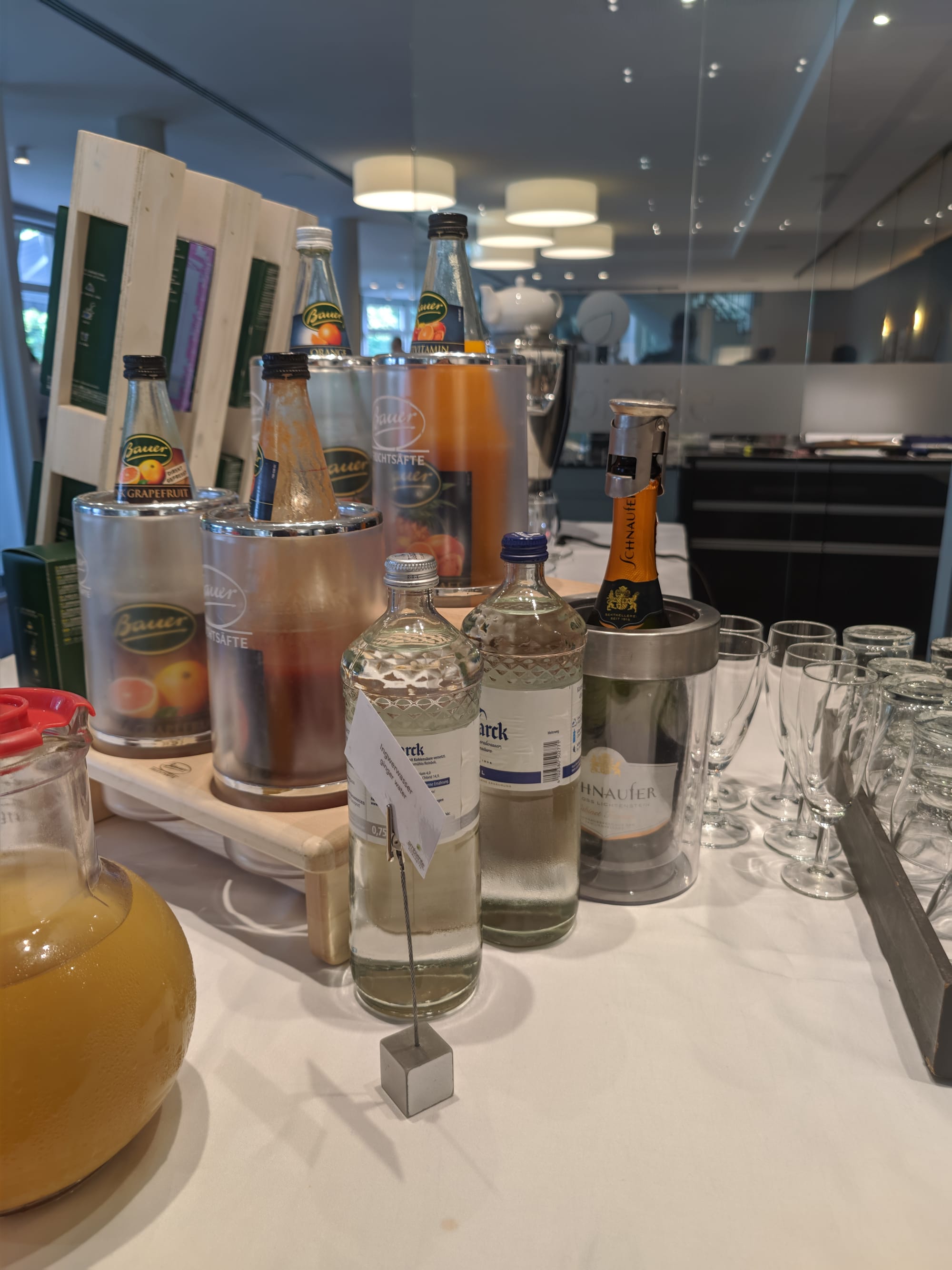 Den gerade frisch geöffneten Sekt lasse ich stehen und nehme mir stattdessen einen Pfefferminztee und einen O-Saft.