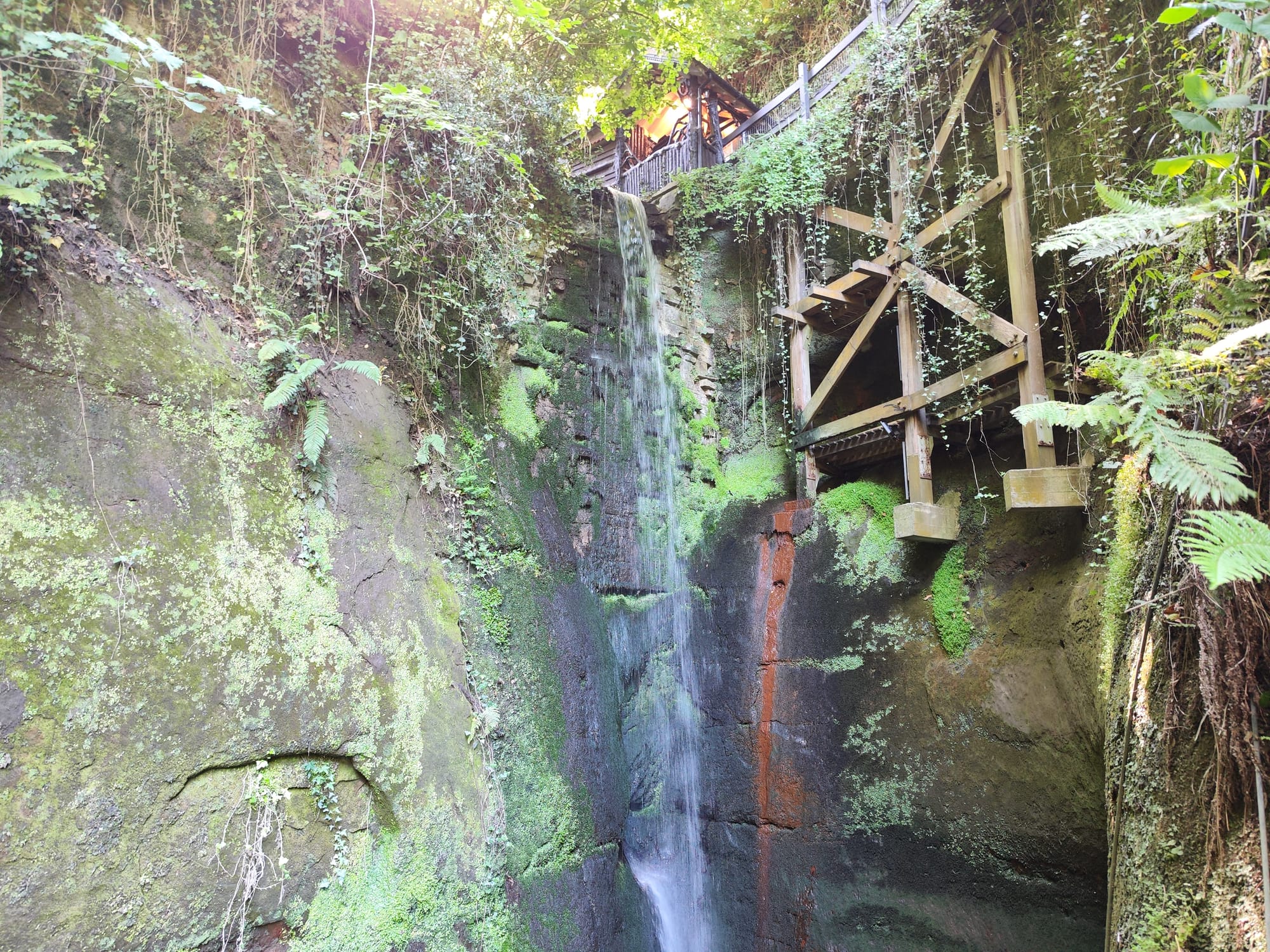 Das ist eine tief eingeschnittene Schlucht in der Steilküstenfront die durch ihr Zusammenspiel von Natur, tropischen Pflanzen und Wasser wirklich beeindruckend schön ist.