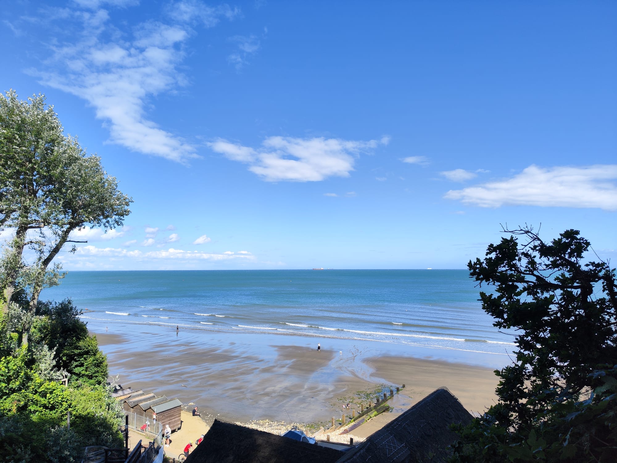 Vom Eingang der Schlucht hat man eine tolle Aussicht auf den Stand und das Meer in Richtung Portsmouth.