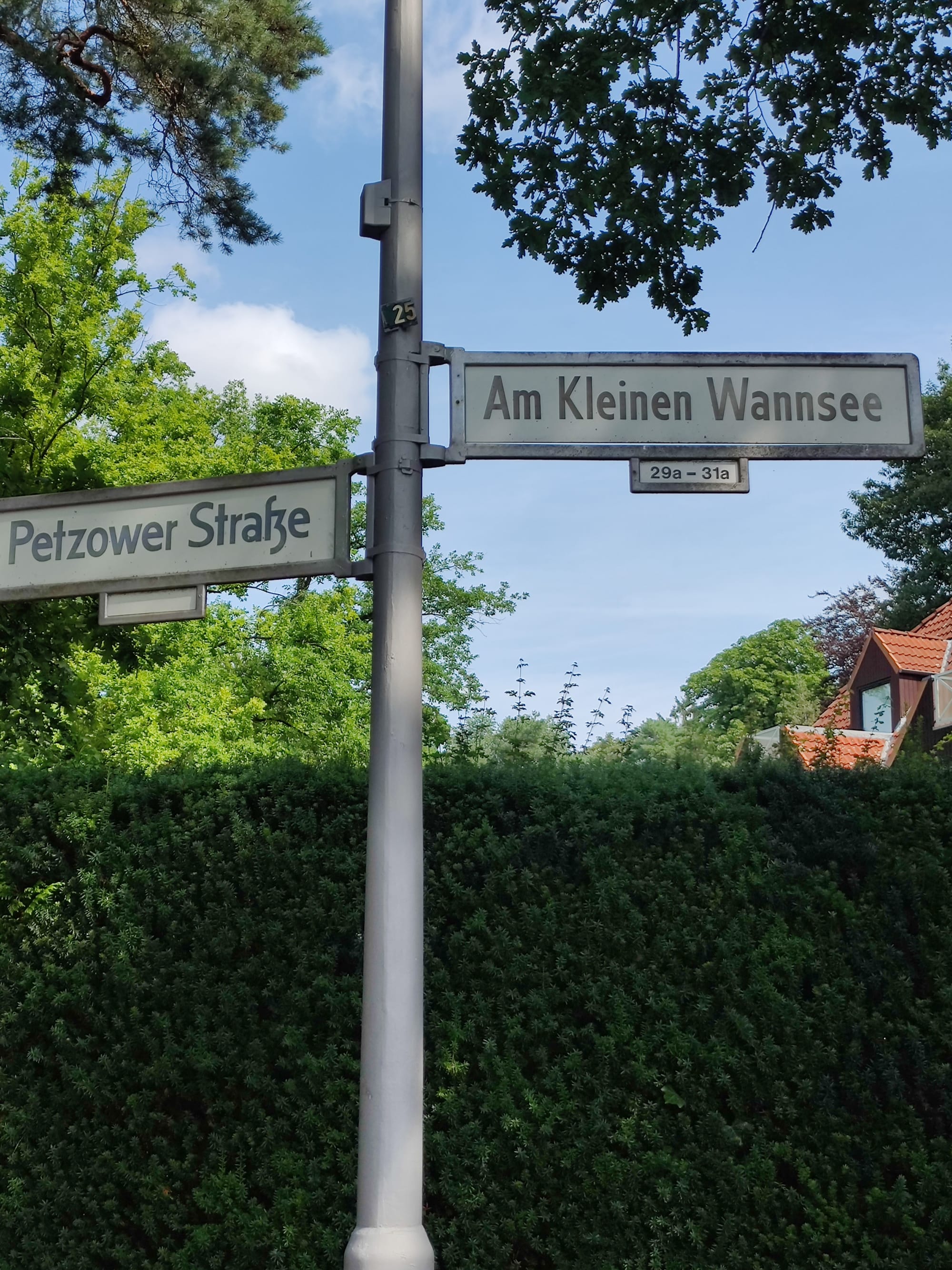 Bei dem Wetter machen sich überall die Leute auf den Weg ans Wasser. Seen scheint es in Potsdam und Berlin auf jeden Fall genug zu geben. ⛱️ Nach ca. einem Drittel der Strecke komme ich an einem Straßenschild vorbei...