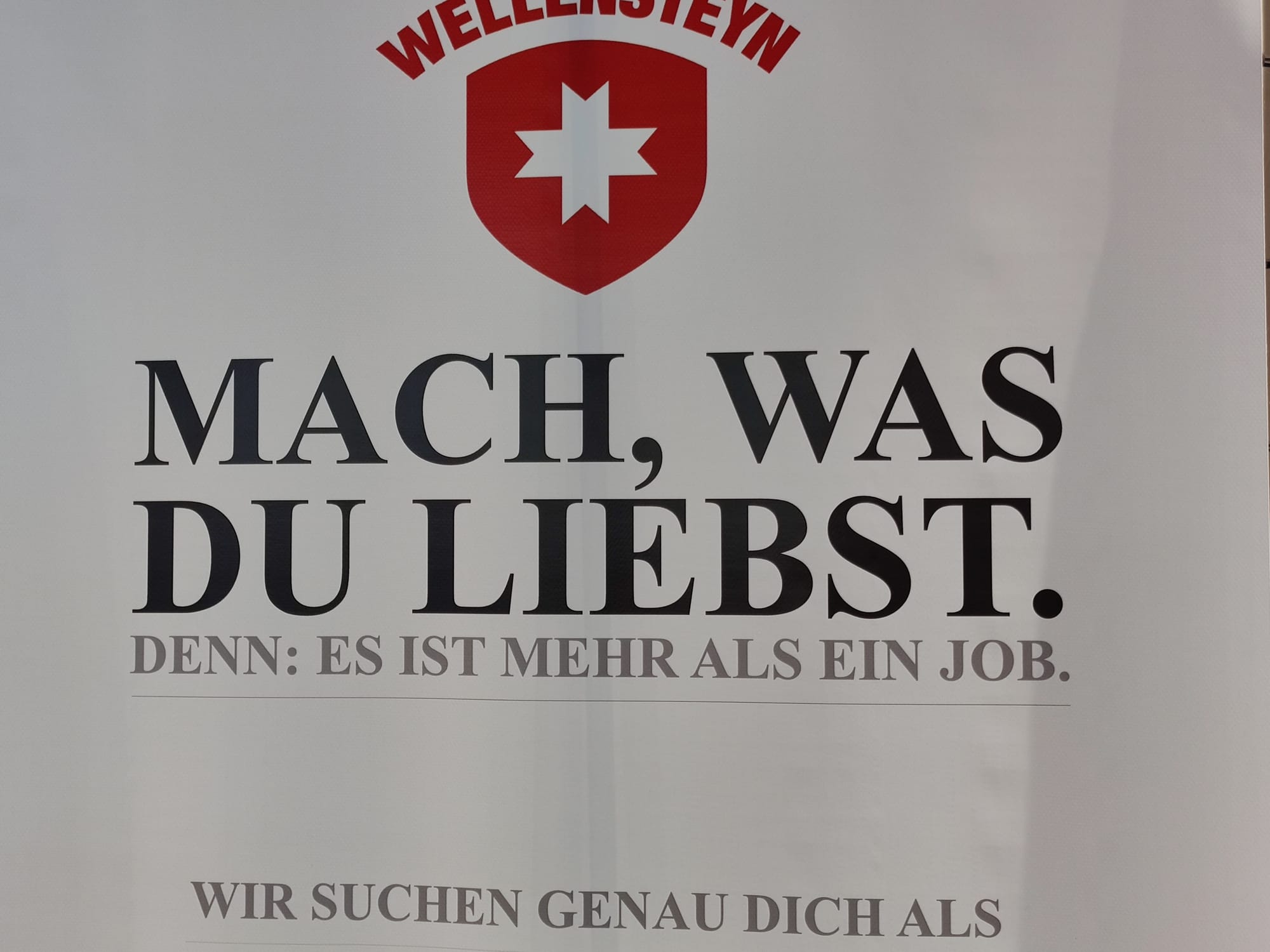 Irgendwo hängt eine Überdimensionale Stellenanzeige. Wer immer sich den Text ausgedacht hat, gut gemacht. Schön wenn man seinen Job so sehen kann.