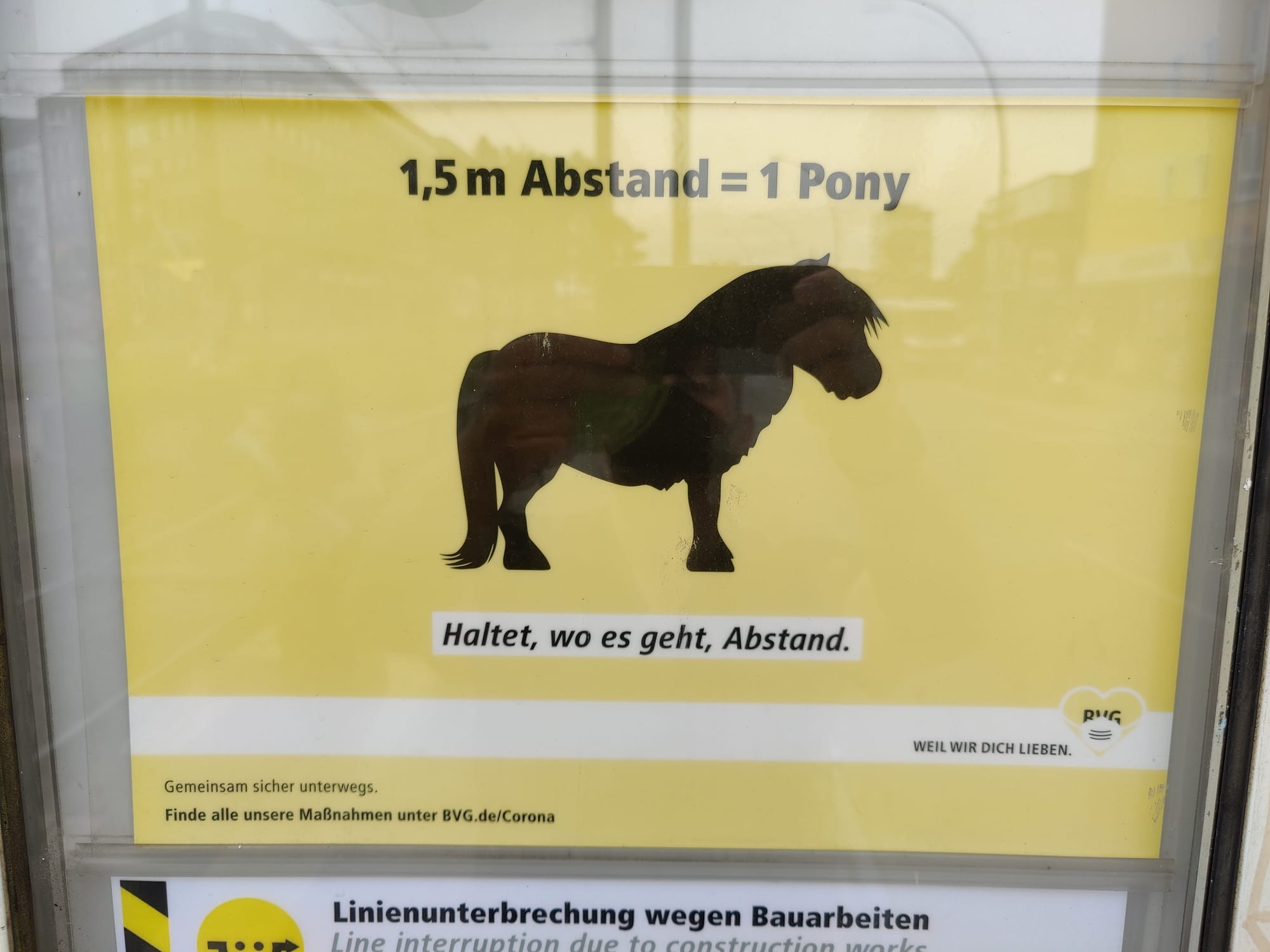Die Berliner (Werbeagenturen) haben auf jeden Fall Humor. Sie hatten viele anschauliche Beispiele was 1,5 m Abstand bedeutet.