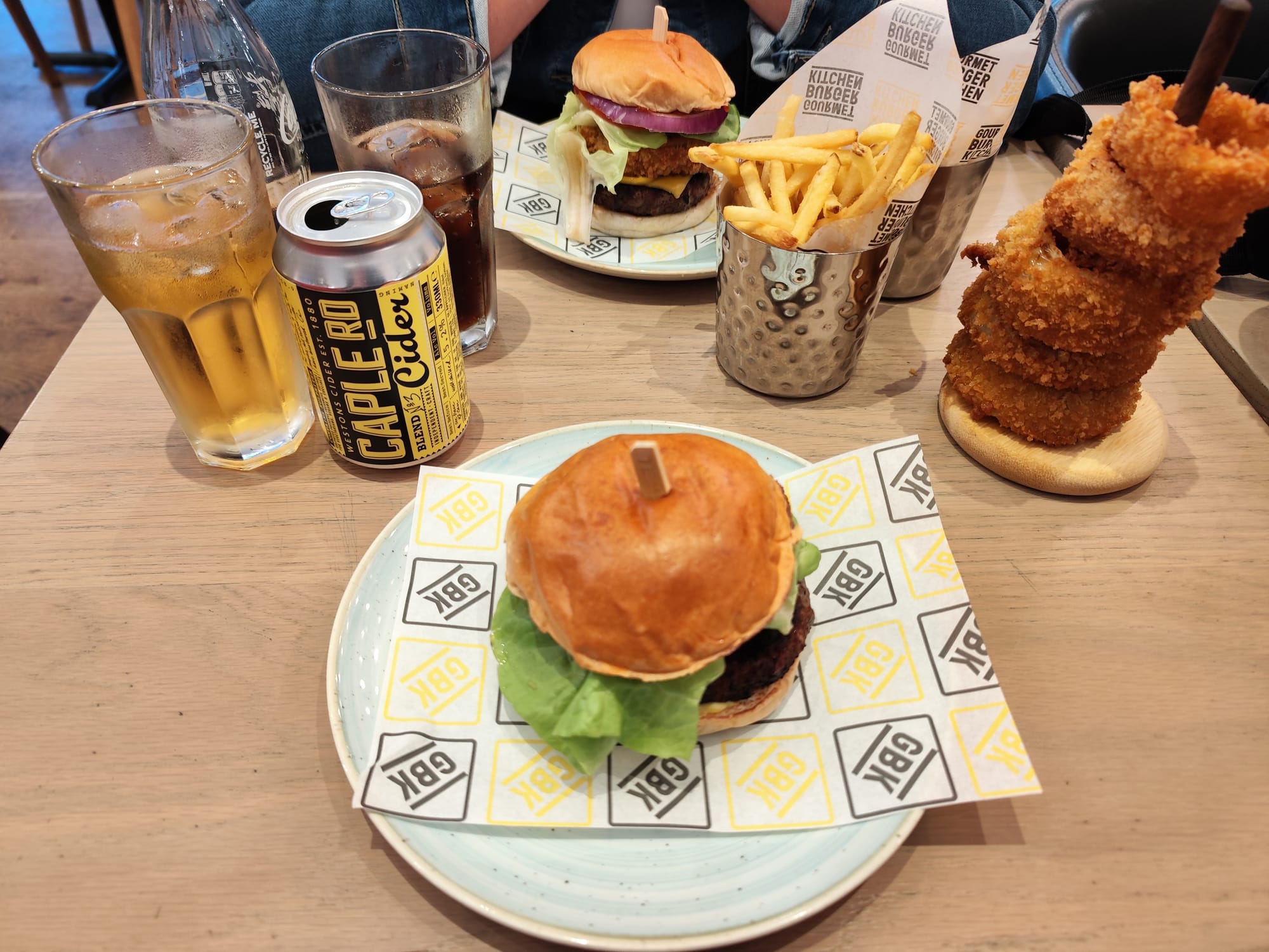 Heue wird bei Gourmet Burger Kitchen gegessen. Die Burger fand ich das letzte Mal schon sehr lecker. Diesmal fiel auf, dass die Buns das Esserlebnis perfektionierten. Nicht zu trocken, ehr klätschig und sie fallen beim Reinbeißen nicht auseinander. Und die Zwiebelringe sind innen schön saftig und außen knusprig.
