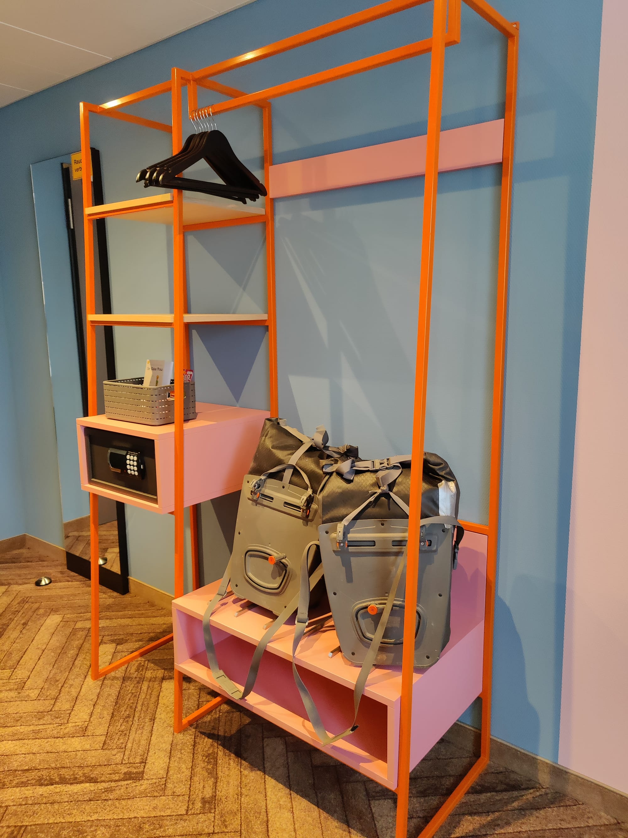 Ich hänge mein Fahrrad in den Platz 103 und hebe meine Satteltaschen in die Gepäckablage.