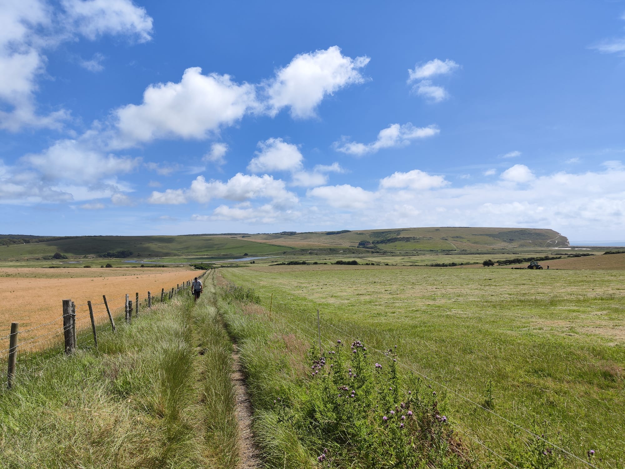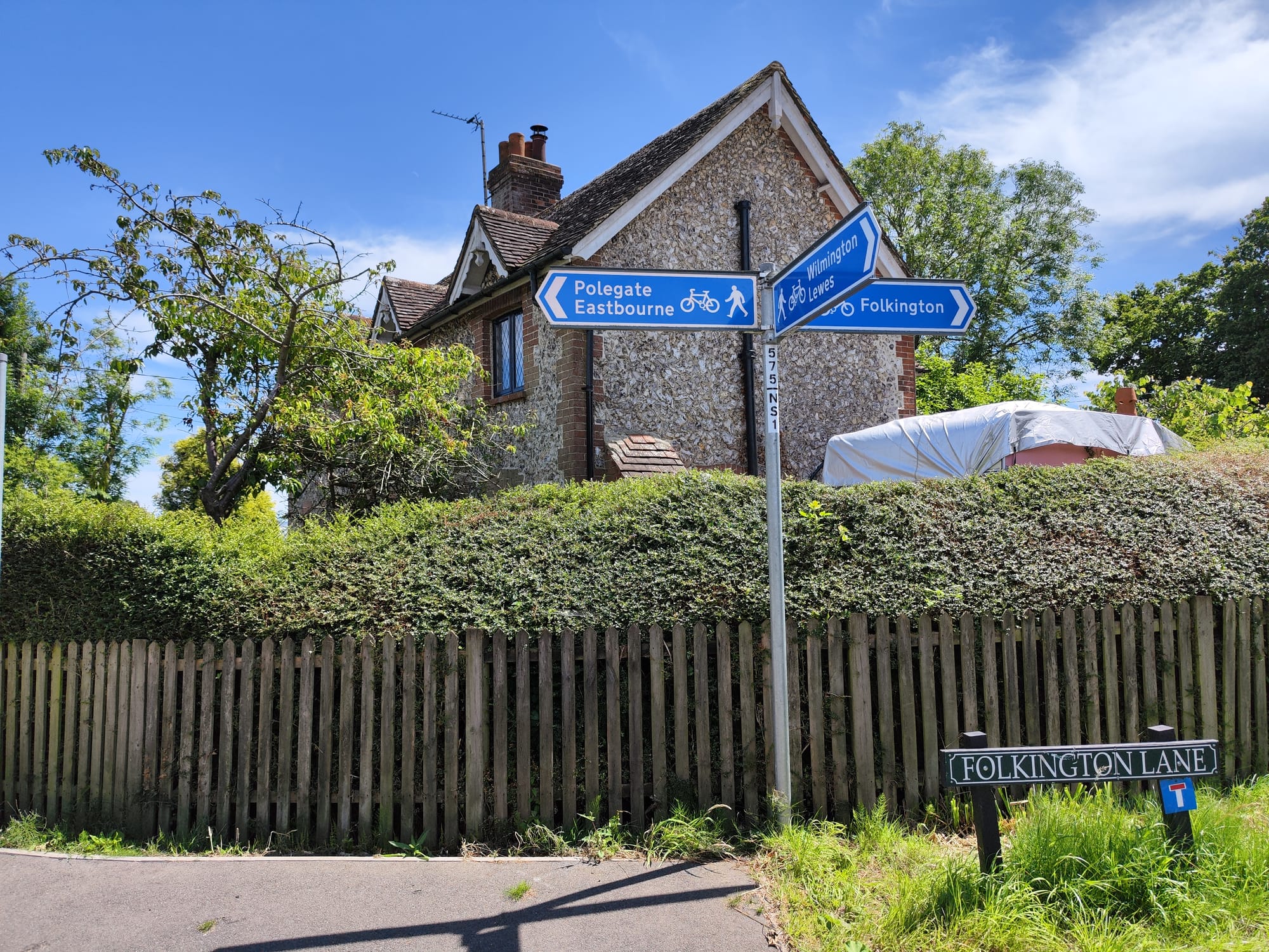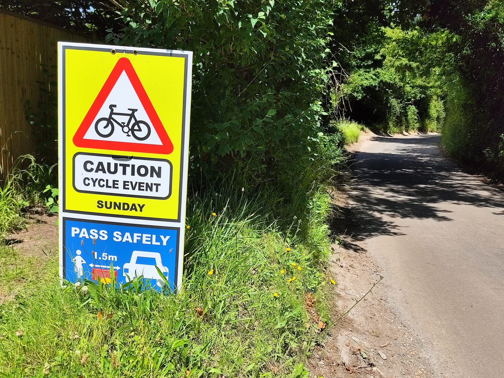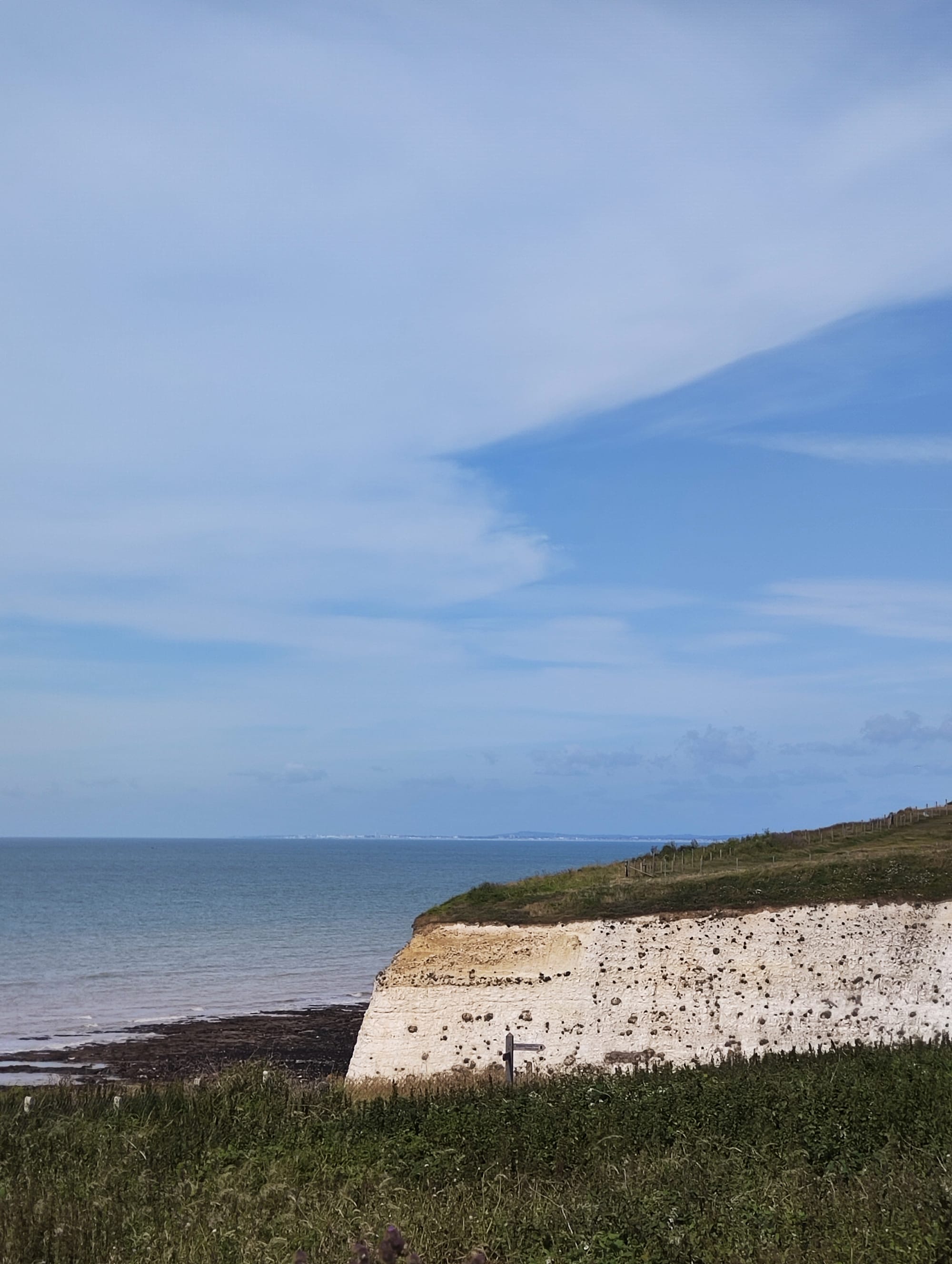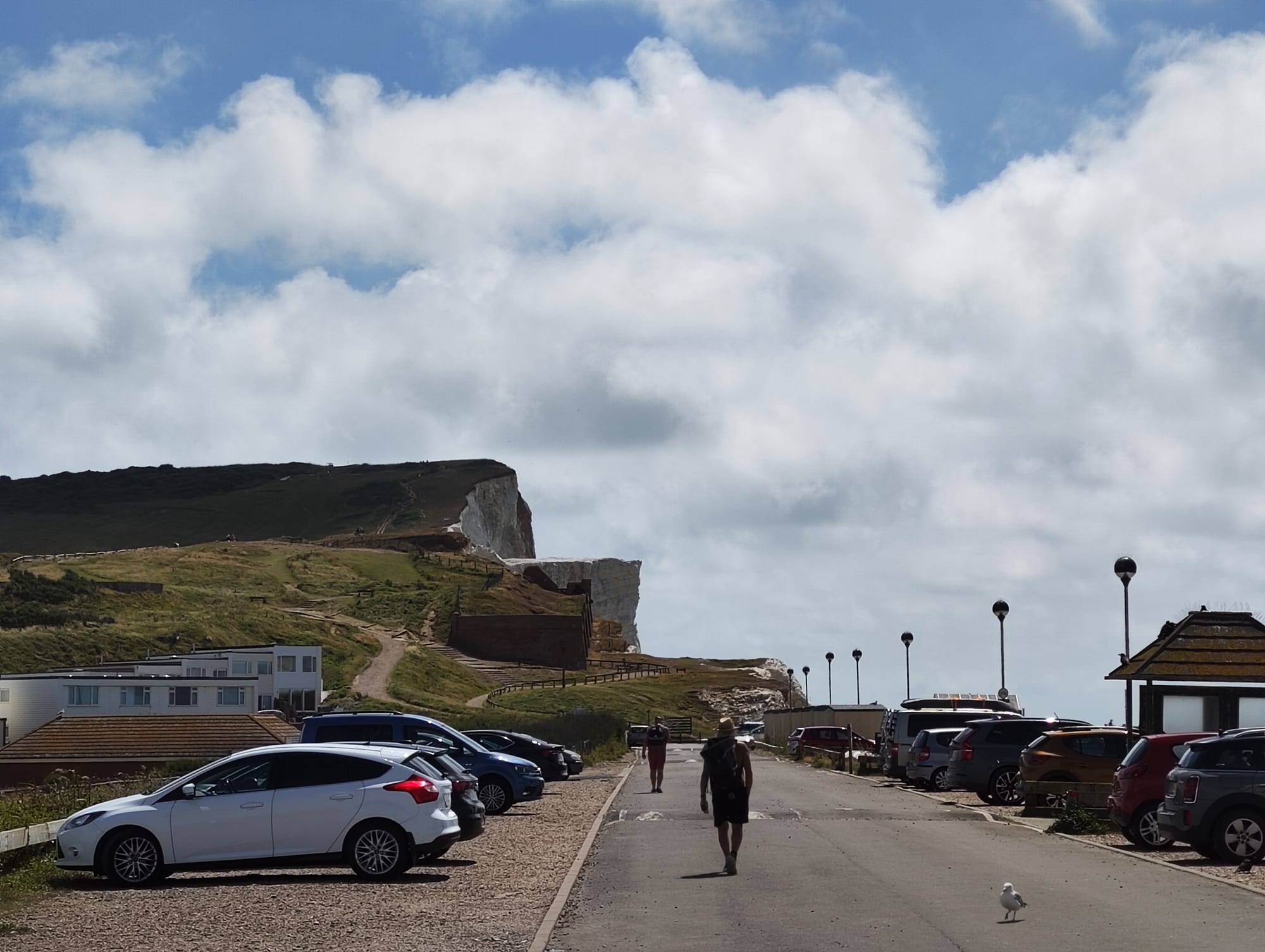 Es geht über angeblich offizielle Fahrradwege, die aus meiner Sicht gerade ein Wanderweg sind, und alle paar hundert Meter muss ein Tier-Gatter geöffnet werden um weiter zu kommen. Es geht vorbei an Stein-Kunst die wohl einen Menschen darstellt und Schildern die auf ein Fahrrad Event am Sonntag hindeuten. In Eastbourne angekommen weiß ich, dass das Event ist ein Triathlon, die Radfahrer auf ihren Rennrädern tun mir jetzt schon leid.