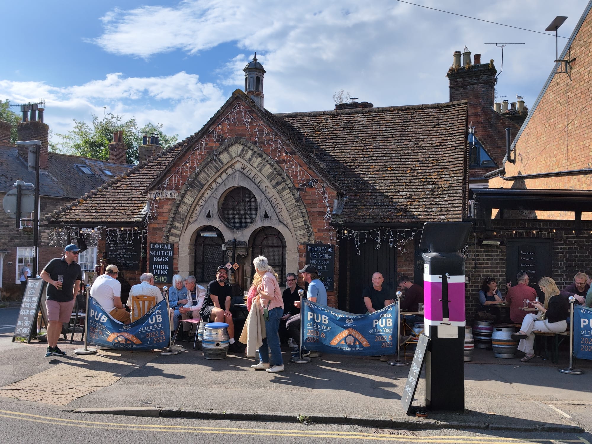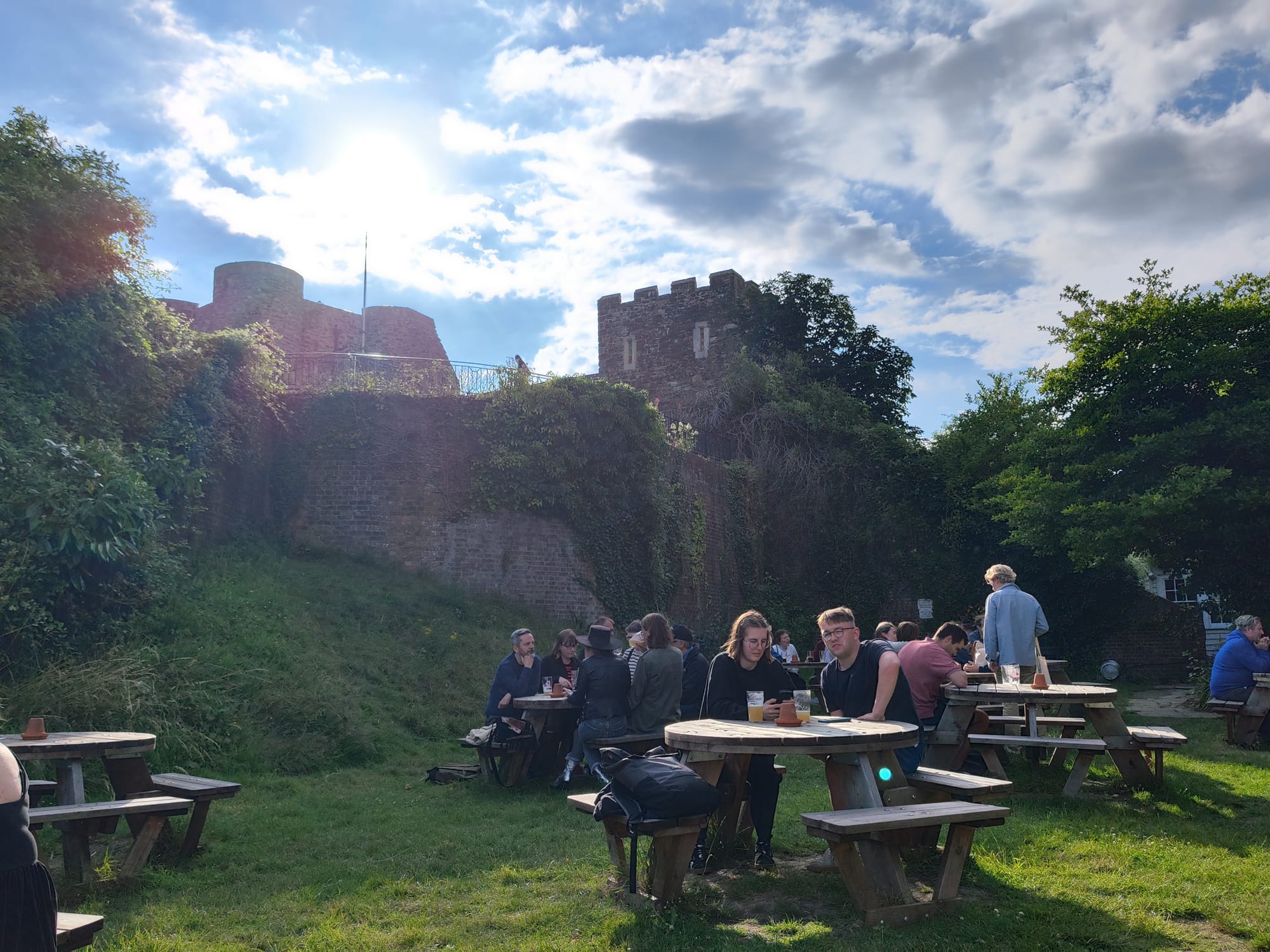 Am Fuße des Ypres Tower liegt ein kleiner Biergarten. Den steuern wir für einen Cider an, nachdem wir einmal durch den kleinen Ort spaziert sind.