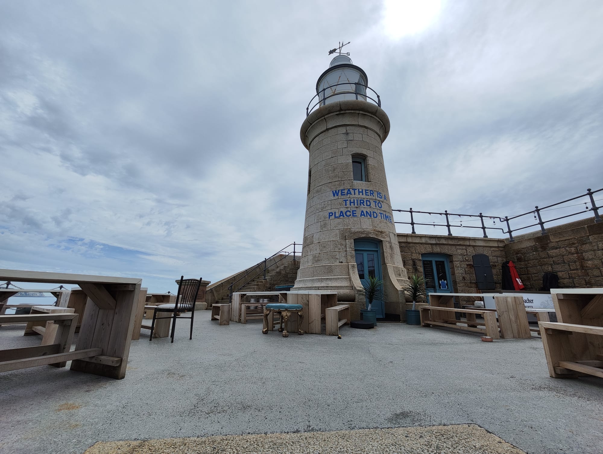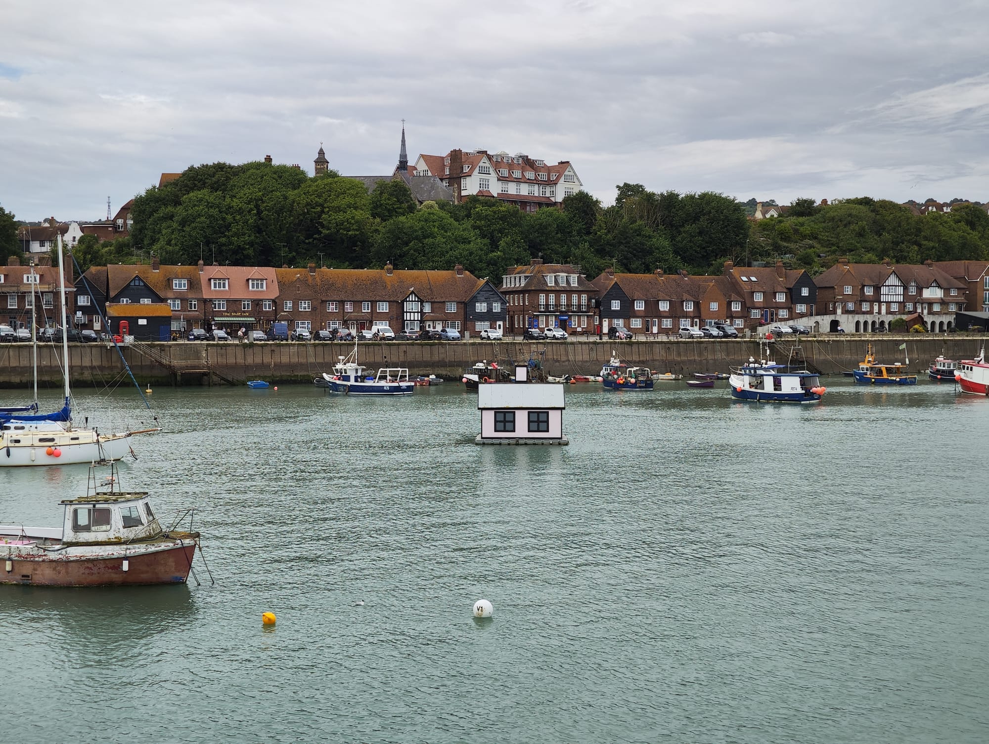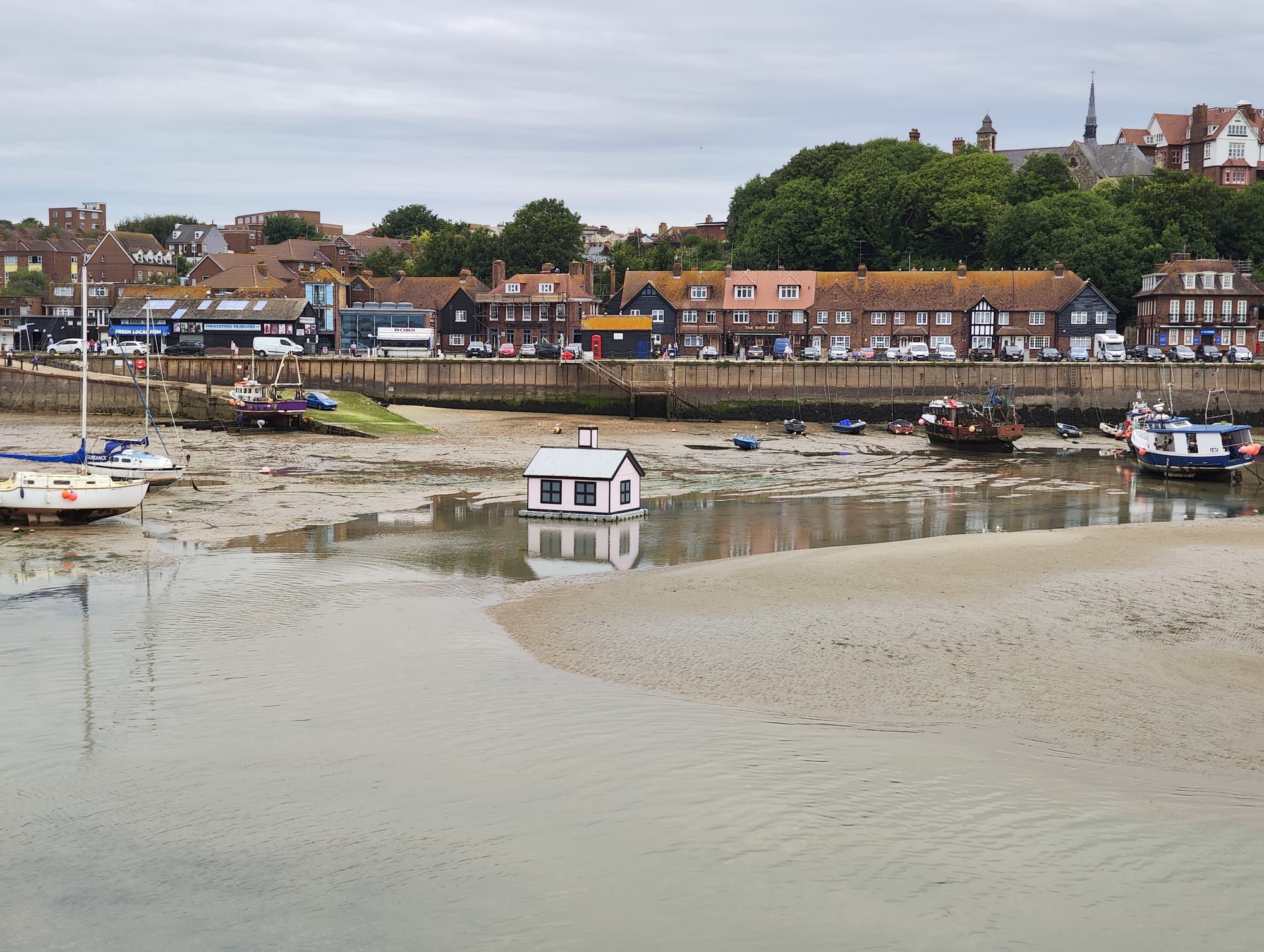 Im Hafen liegt ein kleines Haus, entweder schwimmend oder auf dem Grund. Je nachdem wie hoch der Wasserstand gerade ist. Ich habe mich schon vor zwei Jahren gefragt, wofür dieses Haus benutzt wird. Nach einer kurzen Recherche im Internett finde ich heraus, der Künstler Richard Woods hat sechs winzige Cartoon-Ferienhäuser an ungewöhnlichen Orten aufgestellt, darunter auch auf eins auf einer schwimmenden Plattform im Hafen. Der Künstler möchte damit die Menschen anregen, sorgfältiger über die sozialen Auswirkungen von Eigenheimen, die nur noch als Ferienhäuser vermietet werden, nachzudenken. Auch England hat eine Wohnungskriese. Und ich habe also nur eins, von sechs Häusern gesehen.