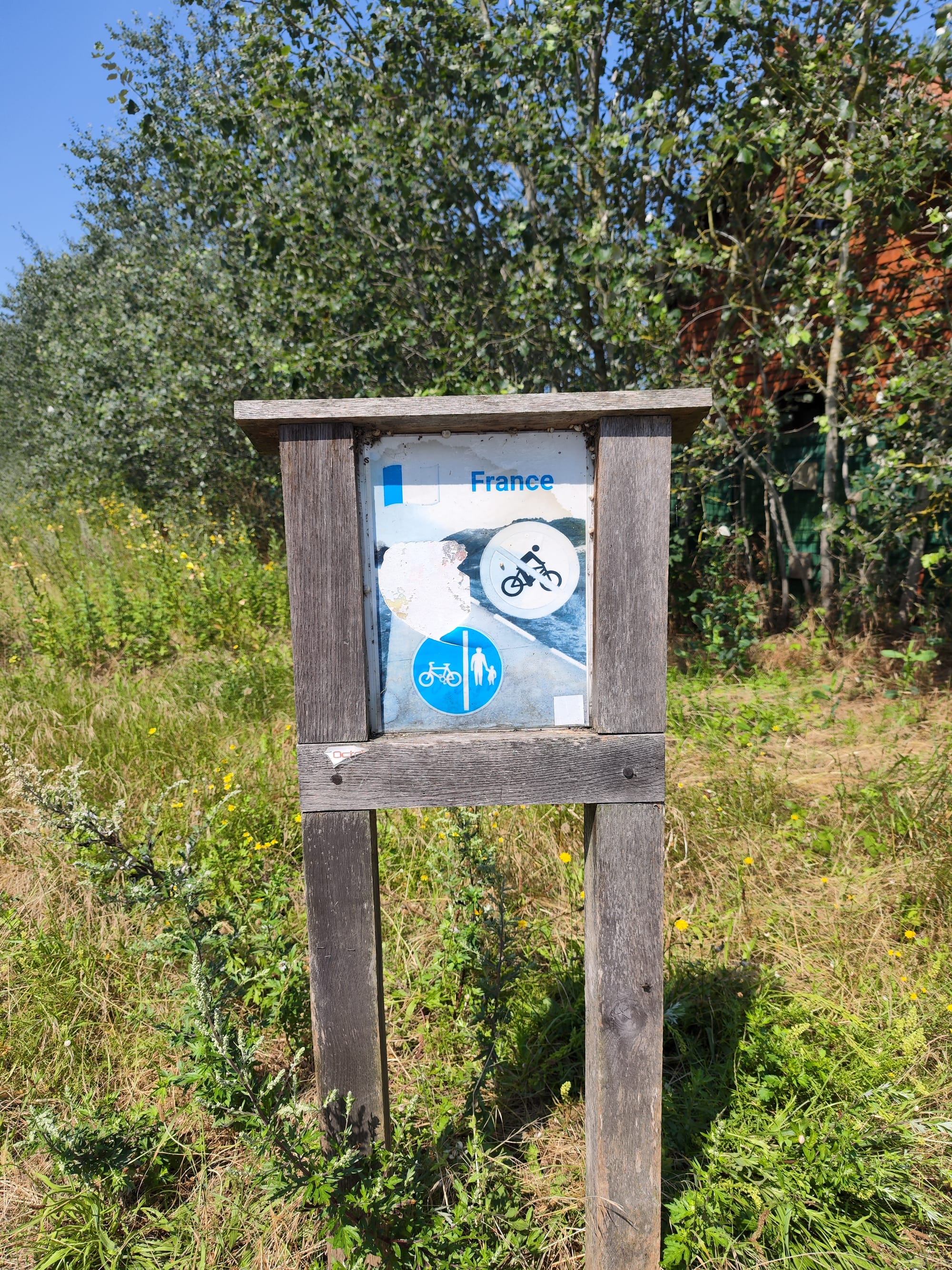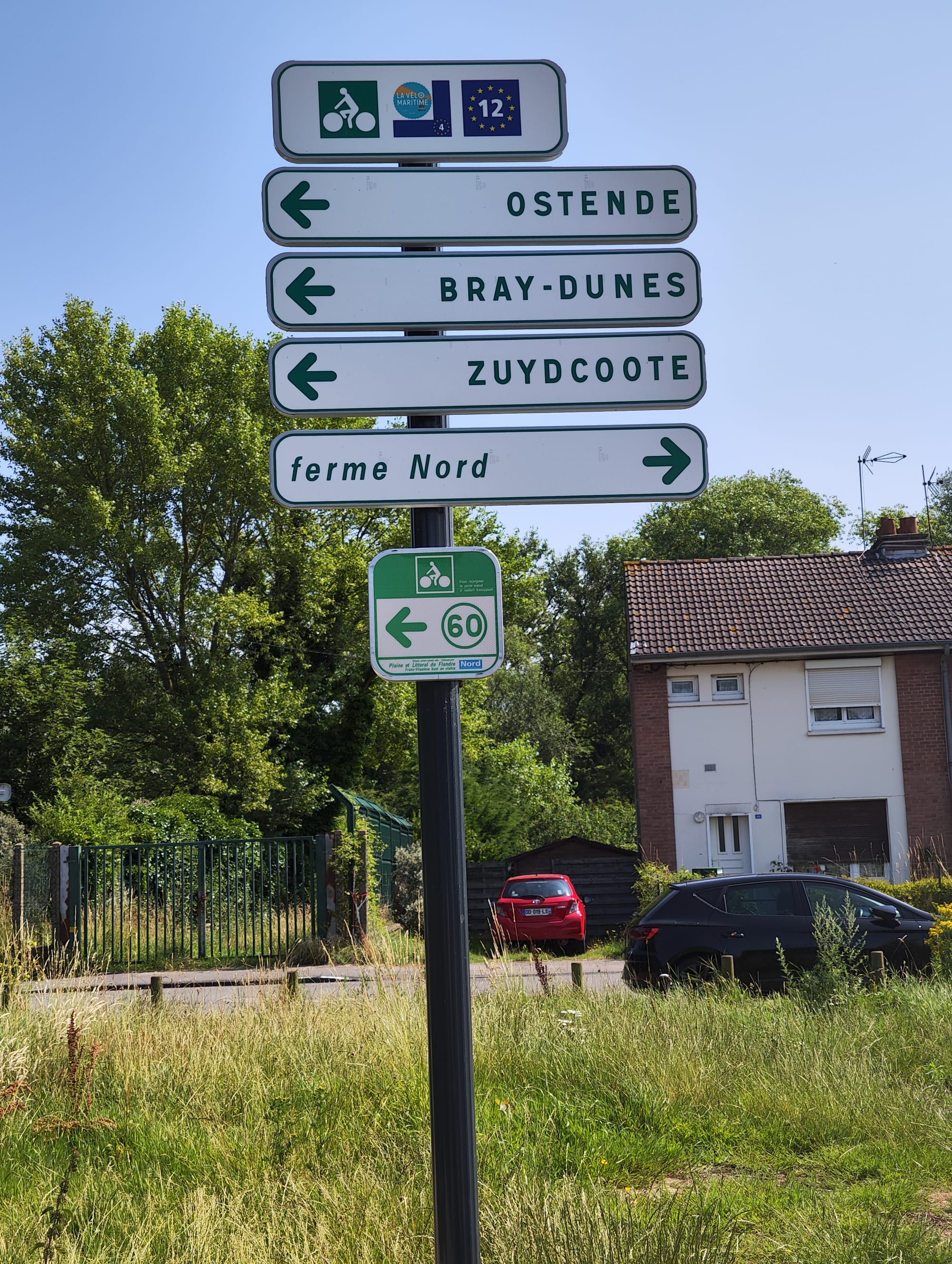 Es dauert nicht lange, bis der erste Wegweiser nach Ostende auftaucht. Kurz danach ist der Fahrradweg in Frankreich zu Ende und wir überfahren die Grenz nach Belgien.