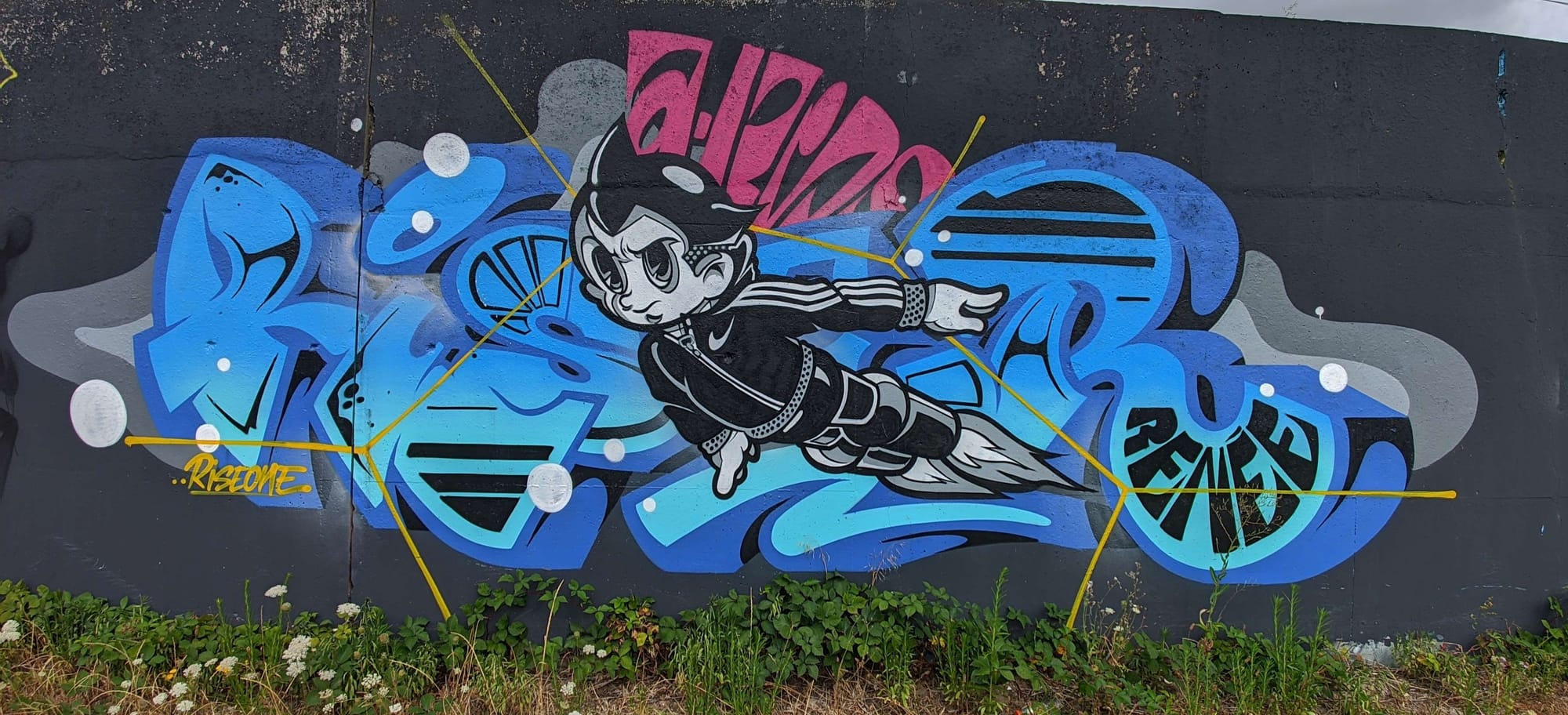 Ich fahre immer wieder an Streetart vorbei, drehe aber nur noch bei einem Bild um.