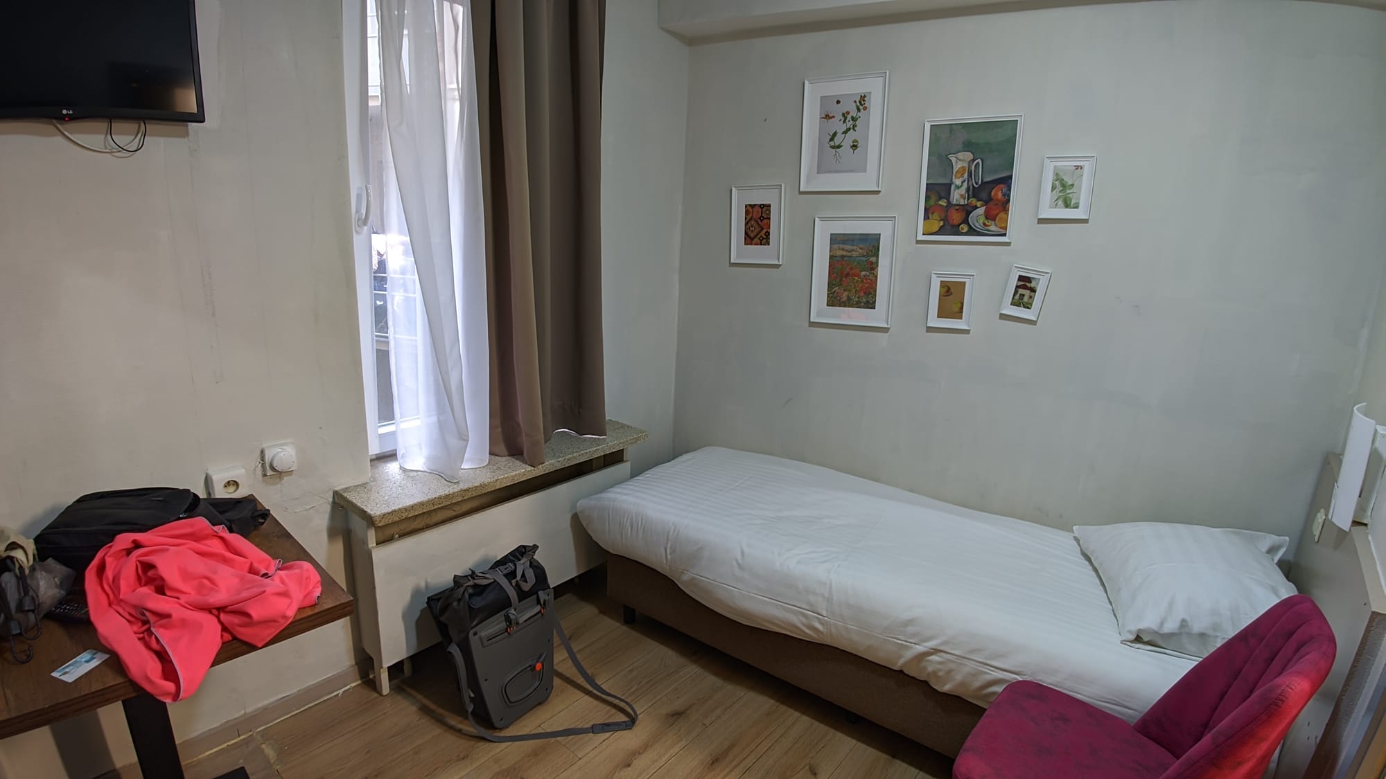 Es ist jetzt nicht dramatisch schlimm, aber das Zimmer hat schon bessere Zeiten gesehen. Auf dem Foto sieht es besser aus als es war, aber zum Schlafen reicht es.