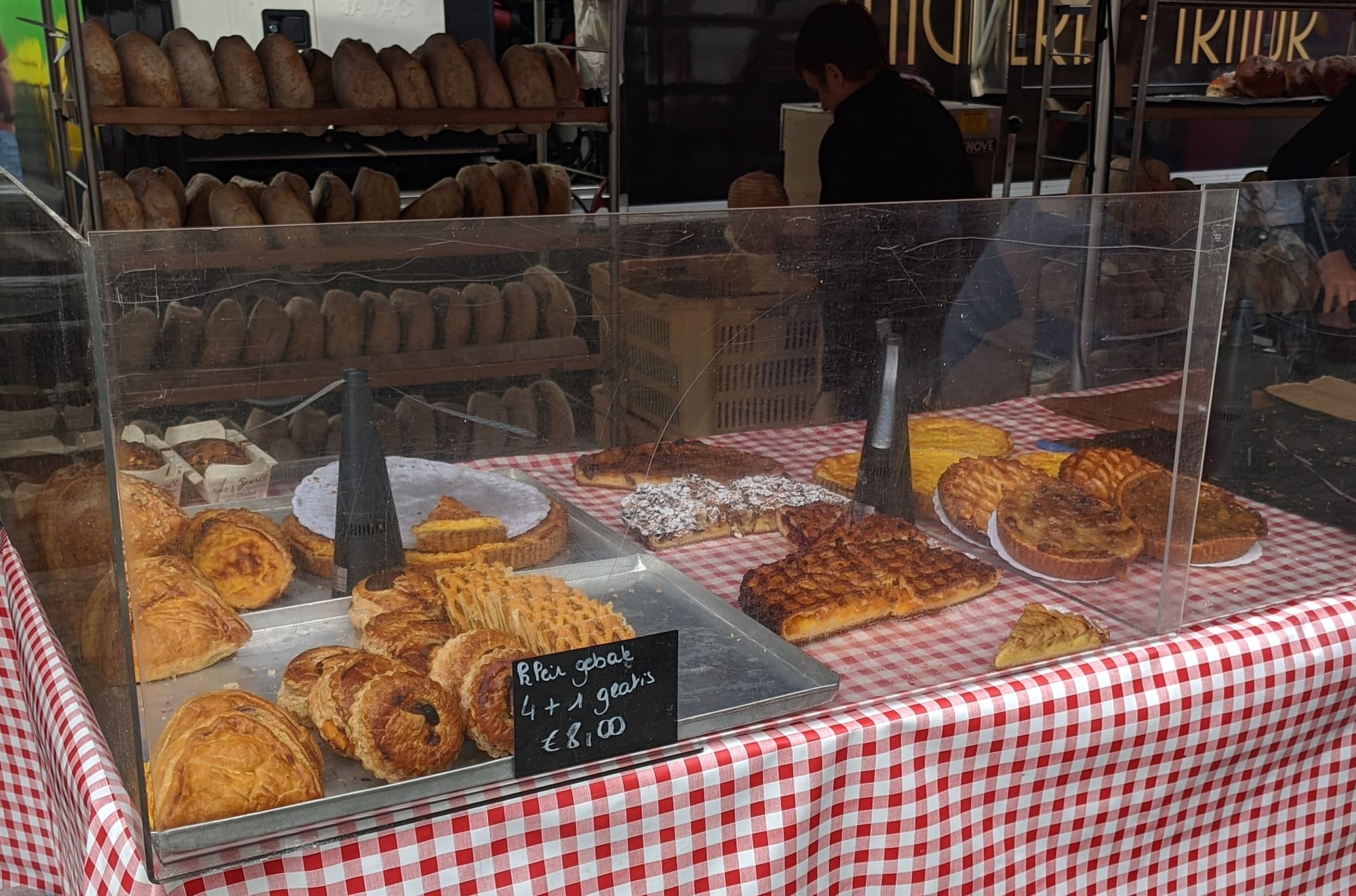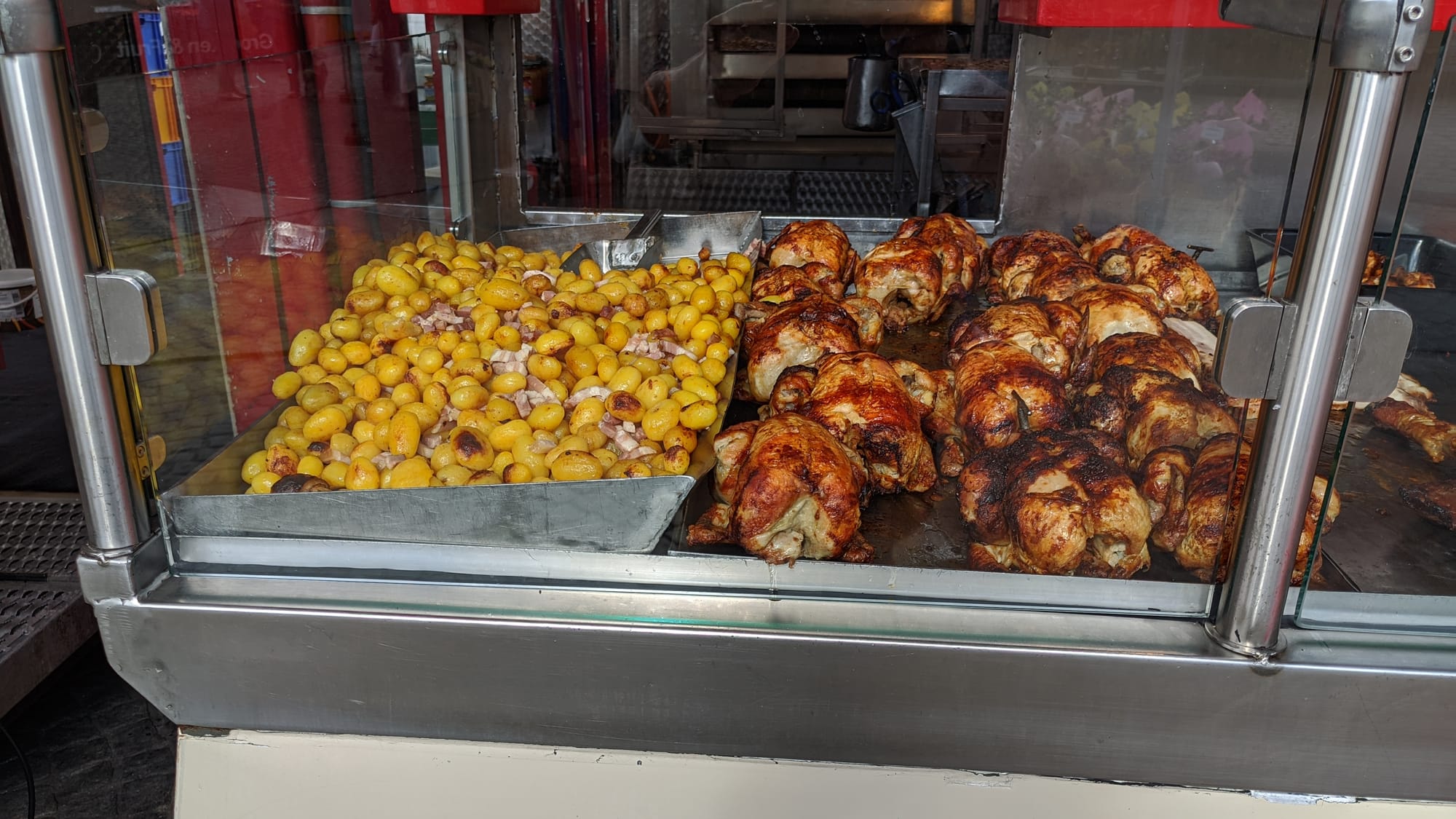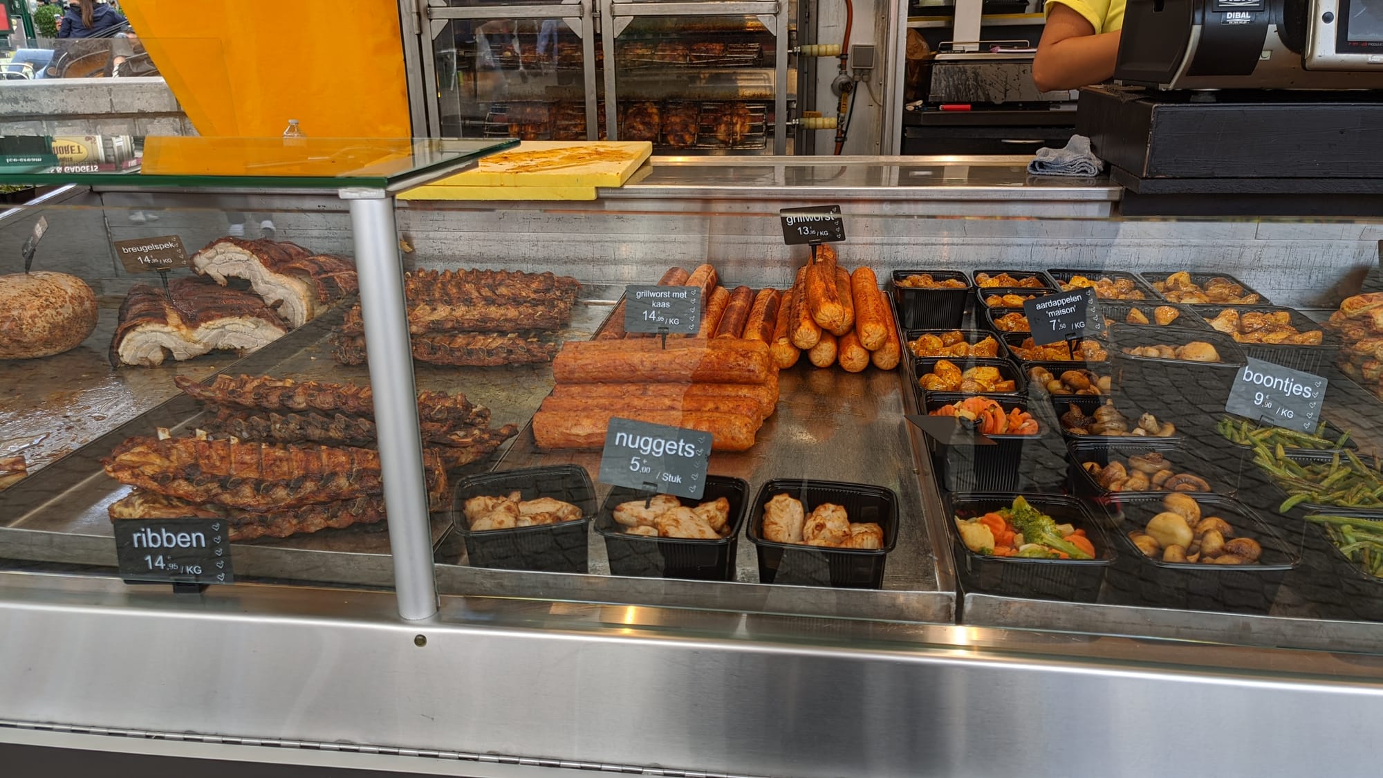 Hier werden lauter leckere Sachen angeboten, die teilweise auch schon fertig zubereitet sind. Wenn ich nicht gerade erst so gut gefrühstückt hätte, würde ich mir hier was holen.