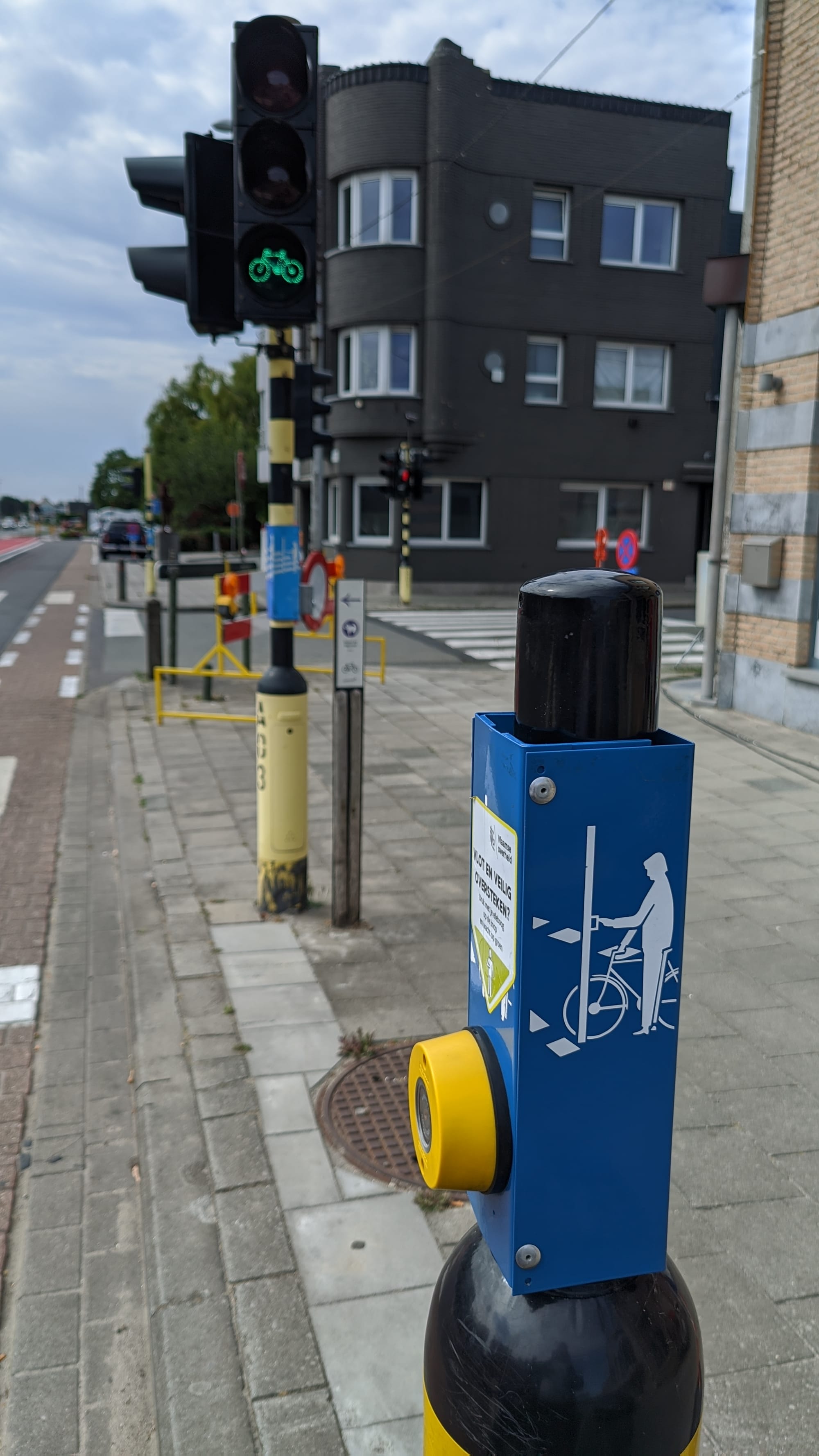 Was ich hier in Belgien auch mag sind die Fahrradampeln. Da hat sogar der Fahrradfahrer seinen Drücker.