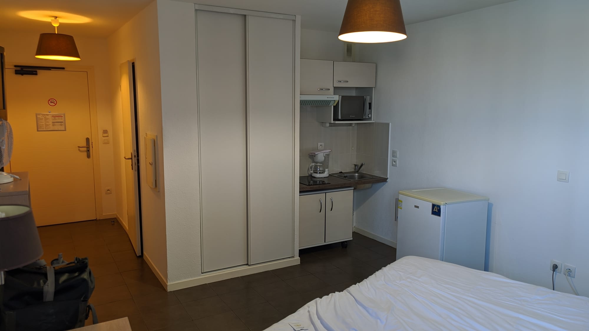 Das Zimmer ist heute also ein Apartment. Ich habe sogar eine Kochplatte, eine Mikrowelle und ein Kühlschrank.