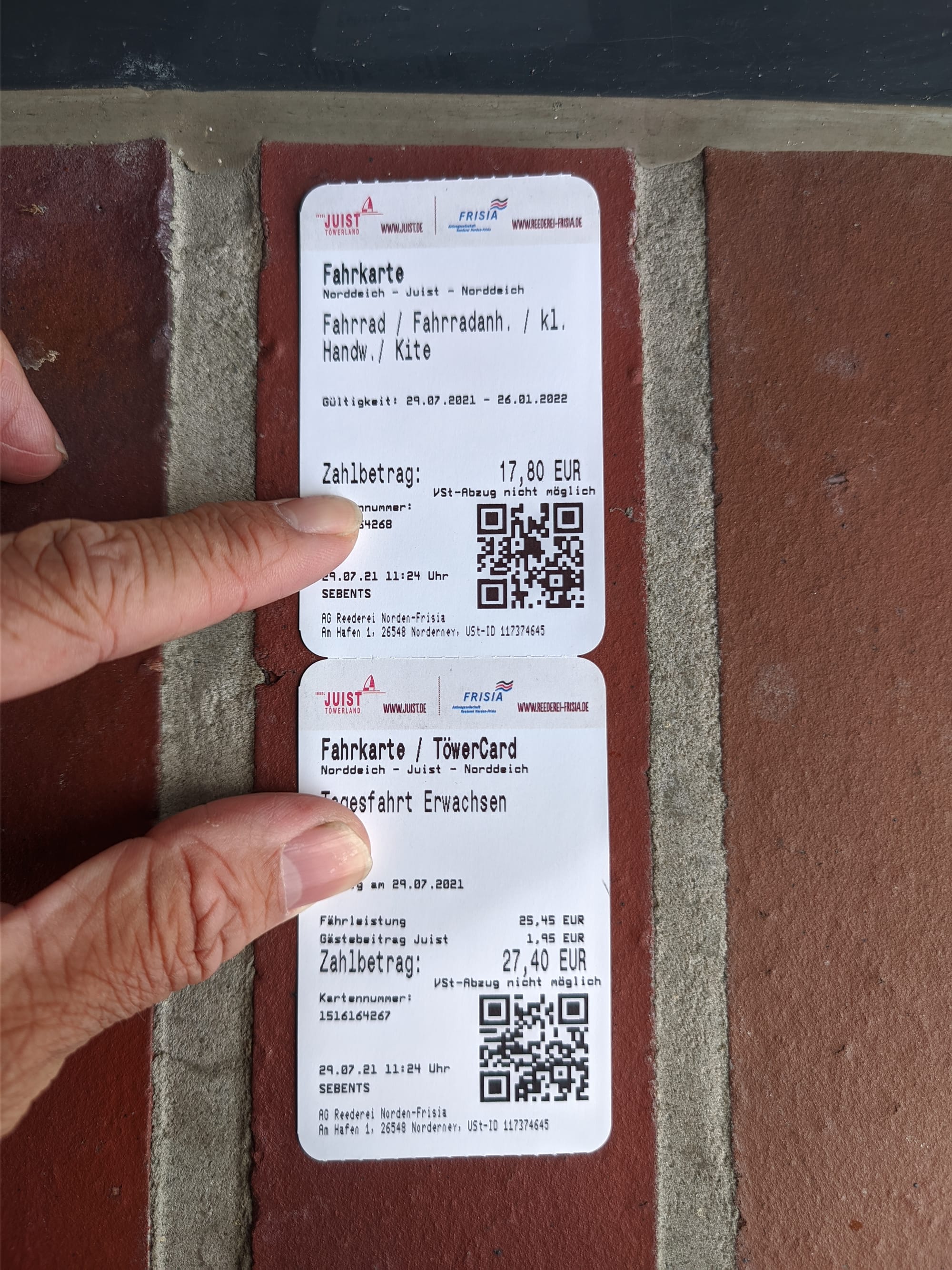 Die Tickets für Rosinante und mich nach Juist.