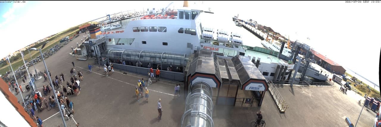 Im Büro 5 sitzen sie vor dem Monitor und beobachten über eine Webcam wie die Fähre einläuft.