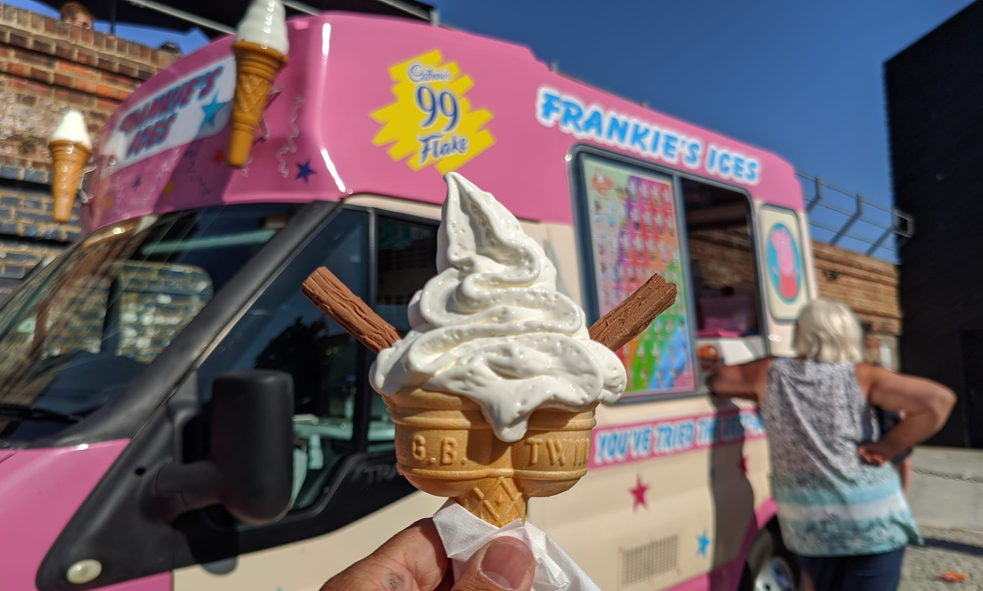 Auf halber Strecke ziehe ich einen typisch englischen Snack aus den Automaten, auf ein Sandwich verzichte ich.