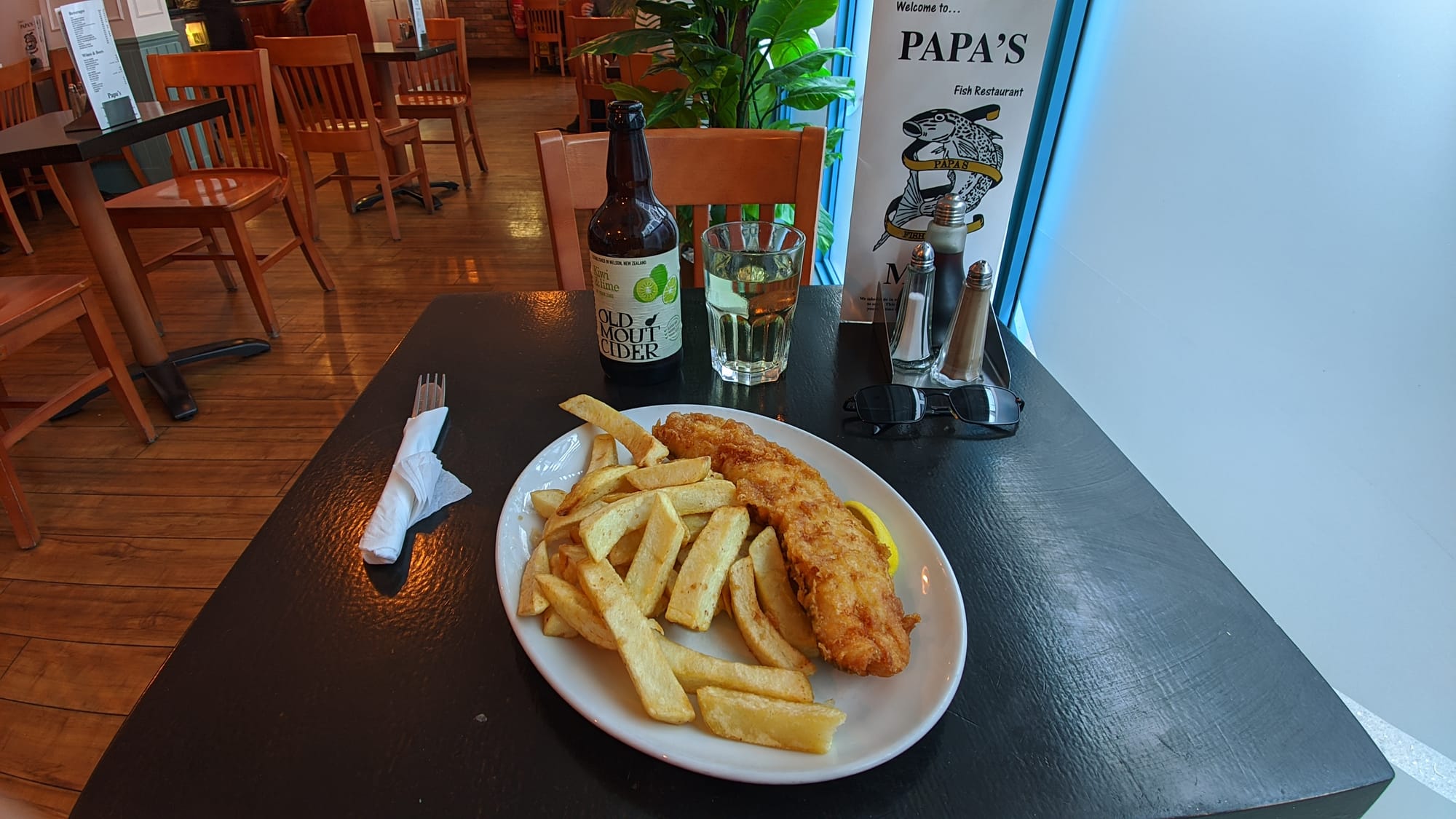 Der obere Teil der Stadt sieht dann wieder so aus wie britisch Städte halt meist so aussehen. Und in so einer Stadt, gibt es auch immer einen Fisch n Chip Shop. Den gehe ich suchen und esse dort zu Abend.