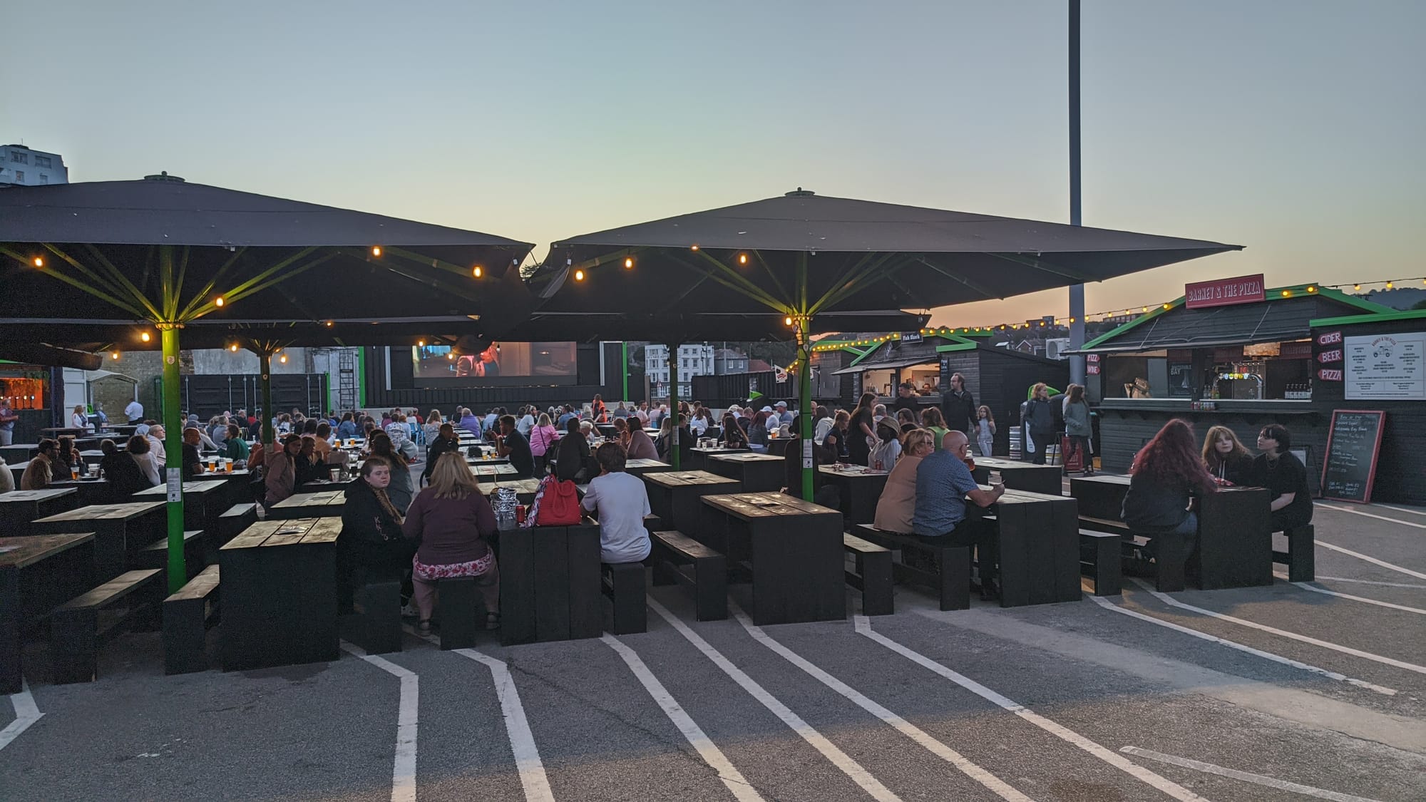 Es gibt Musik, reichlich Getränke und sogar ein Open-Air-Kino. Die hart arbeitende Bevölkerung muss wohl am Wochenende Unterhalten werden.