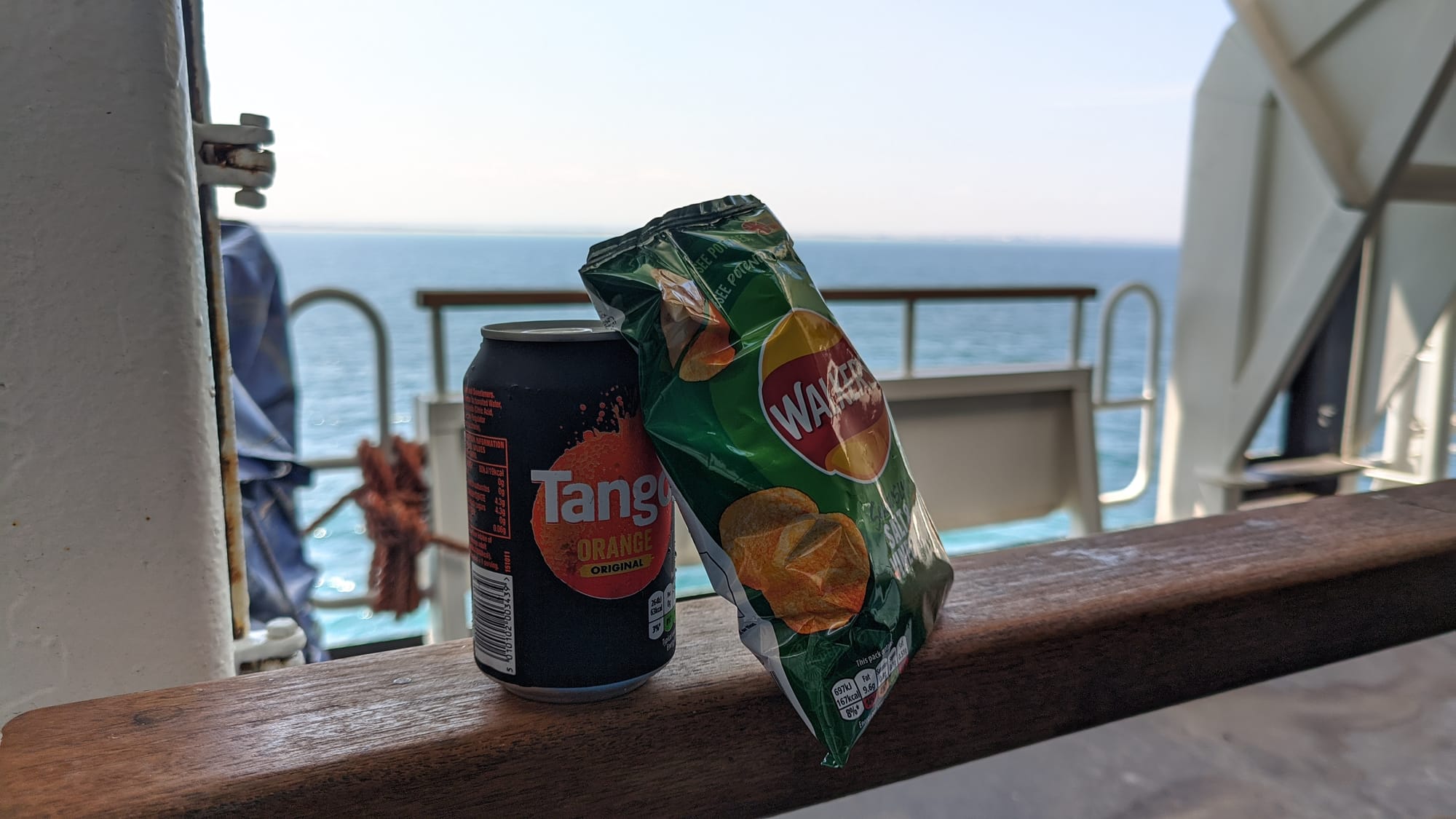 Ca. eine Stunde warten wir bis die Fähre einfährt, so lange hole ich mir noch was zu trinken und spaziere durch den Duty-free Shop.