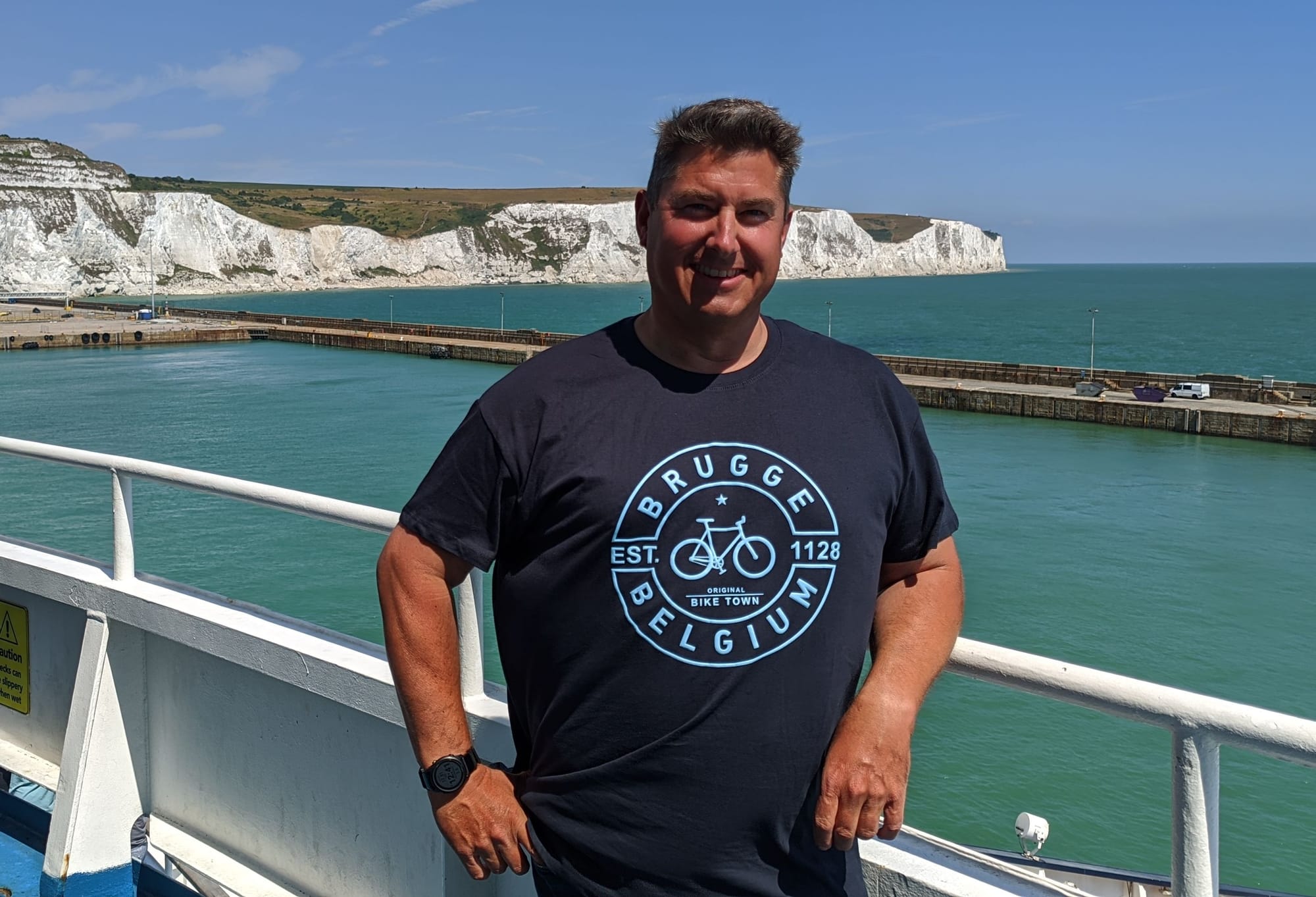 Eine deutsche Touristen spricht mich bei Einfahrt in Dover an, weil sie sieht wie ich krampfhaft versuche von mir ein Foto mit den Kreidefelsen zu machen.